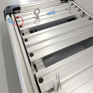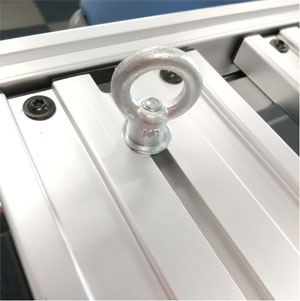 リング部に固定用ロープ等を通し、使用します。スライドしてお好みの位置で床板やサイドフレームにアイナットを固定できます。 |